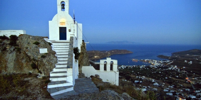 The first view offered to the visitor of Serifos is the infertile slopes with the “petrified figures” which bring to mind the myth of Perseus. Then, the ship turns to the port and the visitor views Livadi and Chora dominating with its cube-shaped, white-washed houses hooked on the conical rock, looking just like frozen white lava.